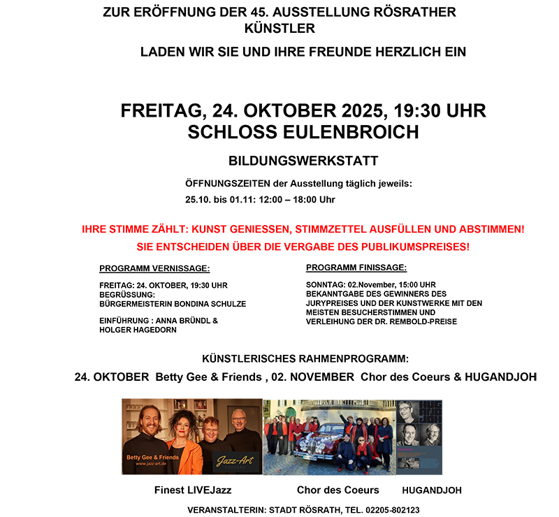 25.10.2024 - 03.11.2024 - "44. Ausstellung Rösrather Künstler", Schloss Eulenbroich, Rösrath